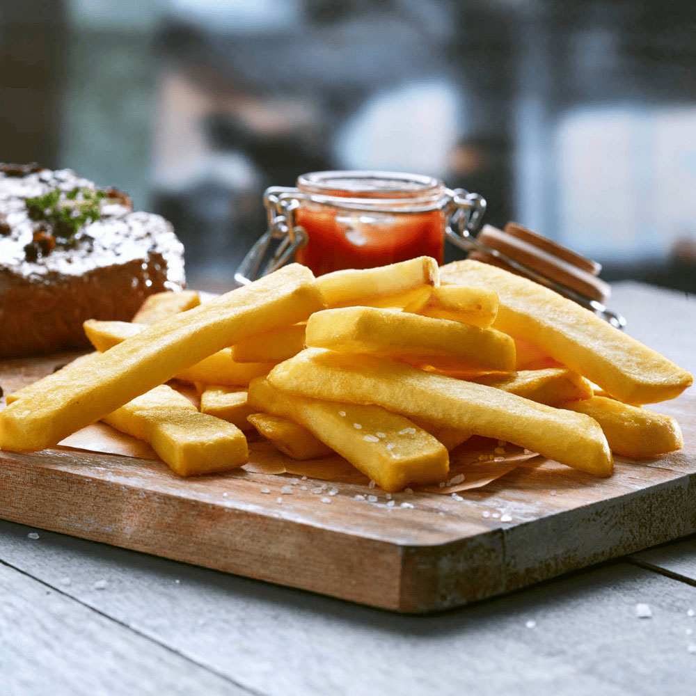 Descripción: Línea de papas fritas Europea. El equilibrio perfecto entre calidad y precio. Steakhouse o corte grueso. 10/22mm.